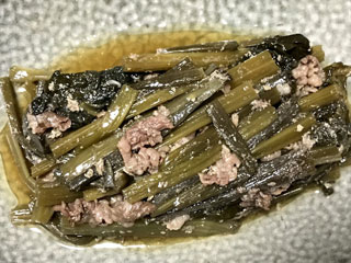 | 葉ごぼうの煮物 葉ごぼうは初めて食べたのですが 見た目は茎なのに完全に牛蒡 一瞬口の中がパニックになります…(笑 |